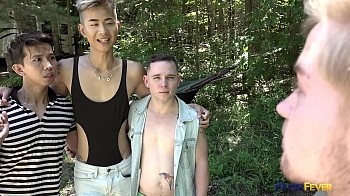 On a warm, sunny Midwestern day, three campers stroll into the grounds of Camp Crystal Cock, blissfully unaware of the erotic fun and nightmares in store for them. Asian twinks Nolan Knox and Levy Foxx and their skinny twin bud Danny Wilcoxx meet blond camp counselor Zacc Andrews who escorts them through the sylvan greenery to their cabin, armed with spooky tales of resident ghost Edith Pickles and her psycho son Jason Whorenees. He prepares them with the camp motto of "Fuck or be fucked!" and they scatter gleefully with a torrent of giggles.