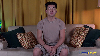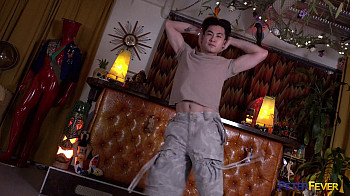 Lubing up a hefty dildo he slides it in deep. When he's too horned up to slow down, he takes up a plastic ass toy and drills in. Kai groans at the deep sensations coursing through his gonads. When the load quakes through his whole body, he puls the ass toy off his cum-slick shaft and licks his wad out of the orifice. With a big satisfied smile.