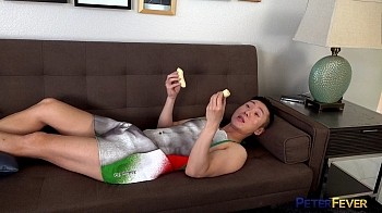 Hans Raw is a little pissed at his fuck buddy Kai, who's gone porn star crazy and can talk about nothing but Matteo Gomez. Instead of getting mad, he's settling down on the couch for a nice relaxing banana facial. This isn't the creamy facial from a big hard banana some of us dream about, but another of the many TikTok crazes. His eyes getting soothed by the cool bananas, Hans avoids Matteo when he strides in asking about the bananas on his face.
