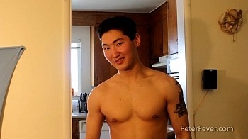 Peter has done it again. He's found another gorgeous Asian stud and coaxed him into the studio for a photo session. Meet Jake Moore. Jake is a straight ripped mixed martial arts master who's originally from Mongolia. He's a little shy at first but Peter gets him loosened up by joining him in front of the camera. After playing around and taking some photos that pretend to have them going at it in combat, Peter gives a few tips on working out and how to build more muscle. After that, Jake is off to the races and as he gets more comfortable in front of the camera, his dick comes out for some air and the real photo session begins. Jake is a natural and after a nice long stint in front of the camera, he hits the shower to show off even more.
