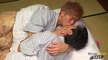 Toyosuke and his new bedtime buddy Zen snuggle up kissing in their crisp white patterned Asian pajamas. As their affection turns more erotic, Zen slides down to flick his tongue across Toyo's pert little nips. Working his way down, he takes Toyosuke's cock into his hot wet mouth and nurses on it. Eyes dreamily half-closed, Toyo lets out a low moan. Things get louder as Zen's talented tongue makes contact with Toyo's hole. Lubing and opening his buddy up, Zen prepares to slide his big dick in bare and natural. But first Toyo wants to get his mouth around it, sucks hard as it swells even longer and thicker. They strip naked and 69 each other's raging hard-ons.
